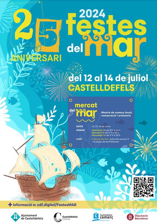 Del 12 al 14 de julio Castelldefels celebra una nueva edición de las emblemáticas Fiestas del Mar. Estas fiestas se celebran cada año con motivo del día de la Virgen del Carmen, patrona de pescadores y marineros. Unas fiestas que dan identidad a la ciudad y cada año atraen a miles de personas, tanto del municipio como de la comarca y que este año celebran su 25 aniversario.