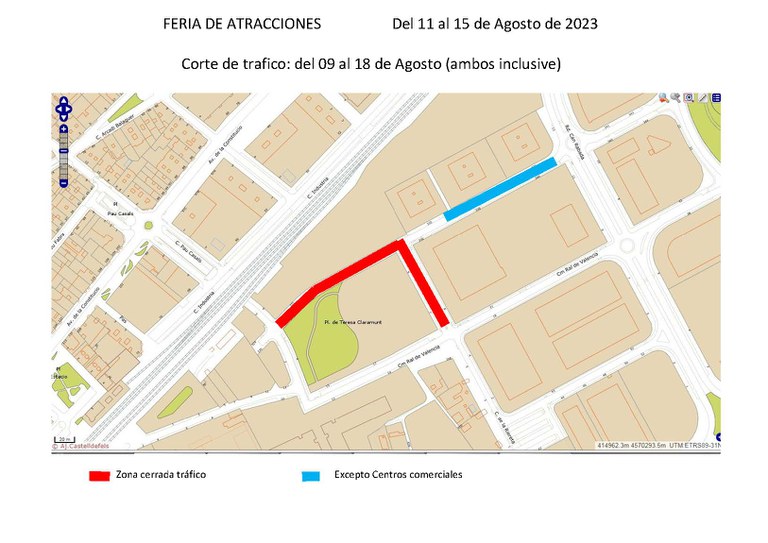 Feria de atracciones – Del 9 al 18 de agosto, se corta el paseo del Ferrocarril a la altura de la calle Riereta hasta Rafael Casanova y la calle Riereta entre Camí Ral y paseo del Ferrocarril. Queda abierto el acceso a los supermercados.