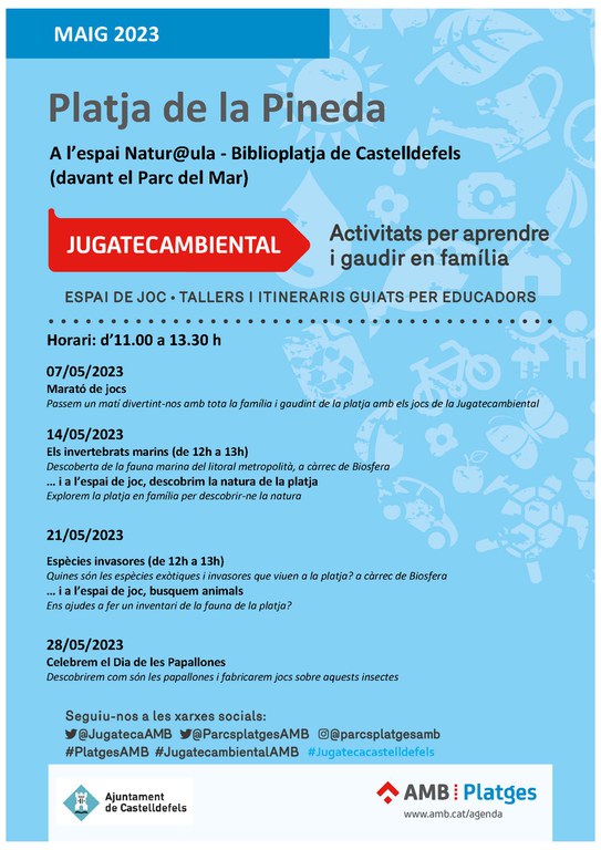 Esta iniciativa del Área Metropolitana de Barcelona con la colaboración del Ayuntamiento de Castelldefels (Área de Medio Ambiente) tiene como objetivo ofrecer un espacio de relación y disfrute para las familias en las que pueden divertirse, explorar y aprender sobre la naturaleza y los valores ambientales de nuestra playa y nuestras dunas.