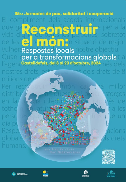 Las 35 Jornadas de Paz, Solidaridad y Cooperación de Castelldefels se desarrollan del 8 al 23 de octubre, este año bajo el lema “Reconstruir el mundo: Respuestas locales para transformaciones globales”.