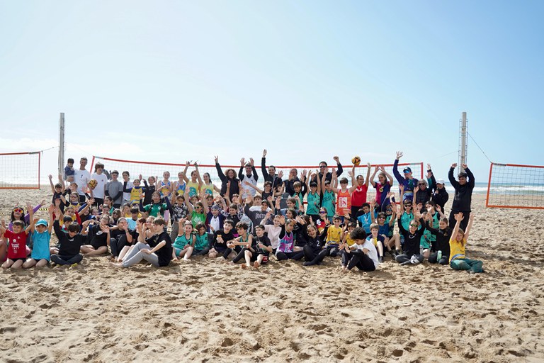 Más de 100 niñas y niños de entre 6 y 14 años se encontraron en la arena del litoral, donde se vivieron partidos durante toda la mañana.