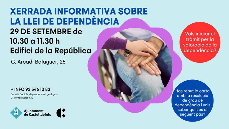 Las sesiones informativas sobre la solicitud y tramitación de la dependencia se realizan de forma mensual el último viernes de cada mes, en horario de 10:30 a 11:30 horas. Las programadas para 2023 son: el pasado 28 de abril, el pasado 26 de mayo, 30 de junio, 29 de septiembre, 27 de octubre y 24 de noviembre. Se realizan en la sala polivalente del Edificio de la República, en la calle Arcadi Balaguer núm. 25.
