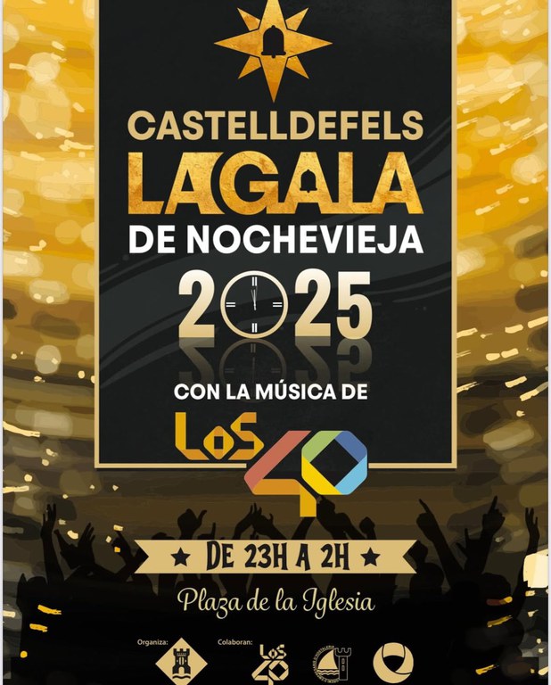 El Ayuntamiento de Castelldefels; con la colaboración del Gremio de Hostelería de Castelldefels, la emisora Los40 y el grupo ETV-Terramar, organiza por segundo año consecutivo la Fiesta de Fin de Año en la plaza de la Iglesia.