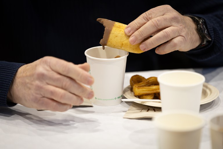 La jornada ofreció la tradicional merienda (chocolatada con melindros), brindis y música y baile (con el grupo La Chatta Trio) para disfrutar de la tarde consolidando un año más este espacio de encuentro entre la Associació de la Gent Gran de Castelldefels, la Associació Casal Rafael Casanova y la Gente Mayor del municipio. En el recinto deportivo se reunió un total de 645 personas.