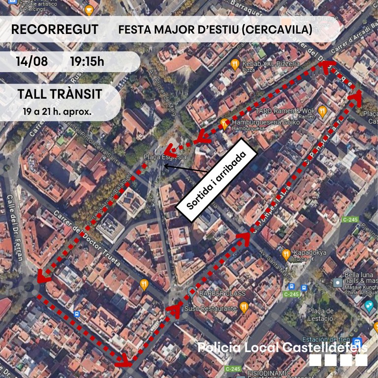 - Plaza Teresa Claramunt (Feria de Atracciones) (del 14 al 17 de agosto, de 21 a 3 horas; y el 18 de agosto, de 21 a 3.30 horas)