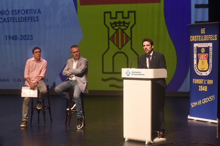 El evento contaba con la participación del Alcalde de Castelldefels, Manu Reyes (PP); Jordi Zorrilla, Presidente de la UE Castelldefels; Joan Soteras, Presidente de la Federación Catalana de Fútbol y Adolfo Borgoñó, Co-responsable de la Comisión Organizadora del 75 Aniversario del Club.