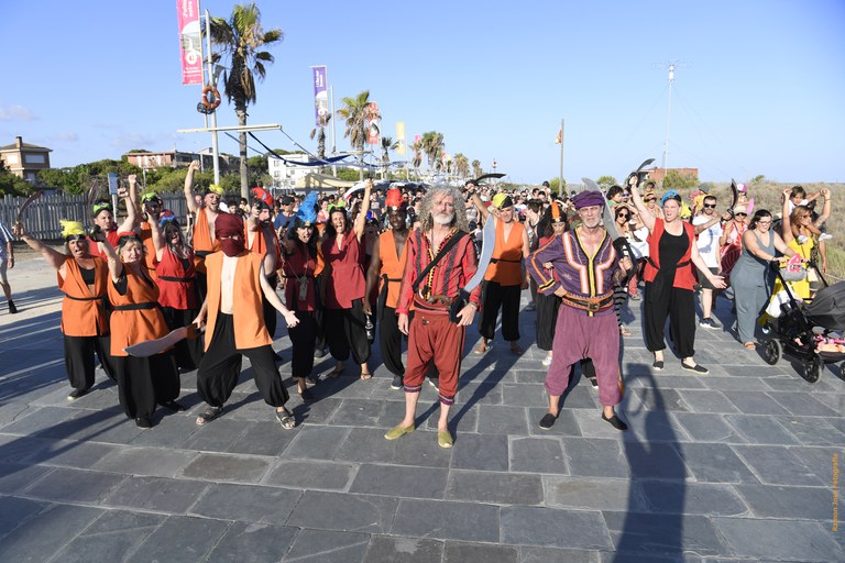 La tarde del sábado 15 de julio empezaba con el pasacalle de piratas acompañados por los Tabalers de Castelldefels que recorrían el paseo Marítimo desde la plaza de las Palmeras hasta la calle 11.