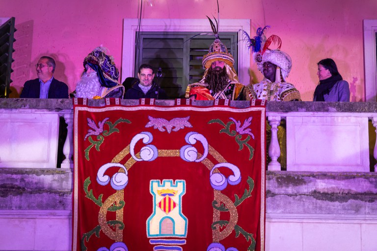Una vez en la plaza, saludaron a las familias de Castelldefels desde el balcón del Ayuntamiento, donde recibieron del alcalde Manu Reyes la llave de la ciudad para acceder a todos los hogares de la ciudad y donde escucharon la carta de los deseos comunes. Este año iba a cargo del alumnado de la clase "Billy Elliot" de 3º A de la Escola Els Pins, ganadores del concurso escolar de cartas dirigidas a SSMM los Reyes Magos.