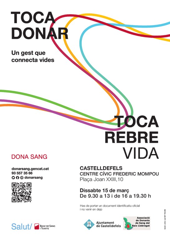 Este sábado 15 de marzo, de 9.30 a 13 horas y de 16 a 19.30 horas, la unidad móvil del Banco de Sangre y Tejidos se instala en el Centro Cívico Frederic Mompou (plaza Joan XXIII, 10) · La donación de sangre es un acto imprescindible para garantizar la asistencia sanitaria en los hospitales