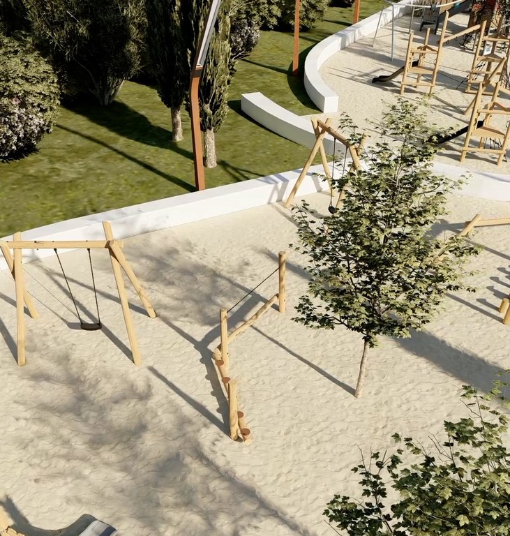 Se añaden 10 nuevos juegos infantiles, entre ellos un gran barco pirata con tirolina, que será el protagonista del nuevo parque. También se renuevan todos los pavimentos, se establecen nuevos caminos, zonas de arena y caucho, así como nueva iluminación y área inclusiva (juego 100% inclusivo).