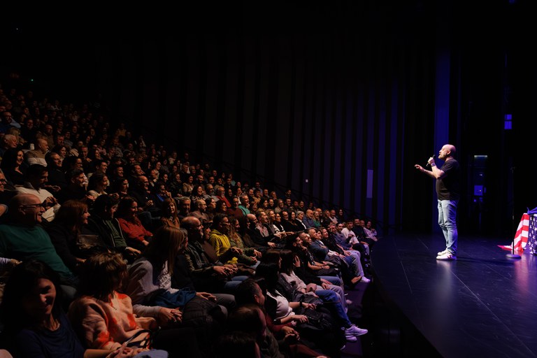 Antes del grueso de las actividades en la calle, el pasado viernes 13 de febrero, el Teatro Plaza acogió una nueva función del ciclo Castelldefels Comedy Stars. En esta ocasión, el protagonista fue el popular cómico Goyo Jiménez, que llevó a Castelldefels su espectáculo "America Forever". El Plaza, con las entradas agotadas, se llenó a tope.