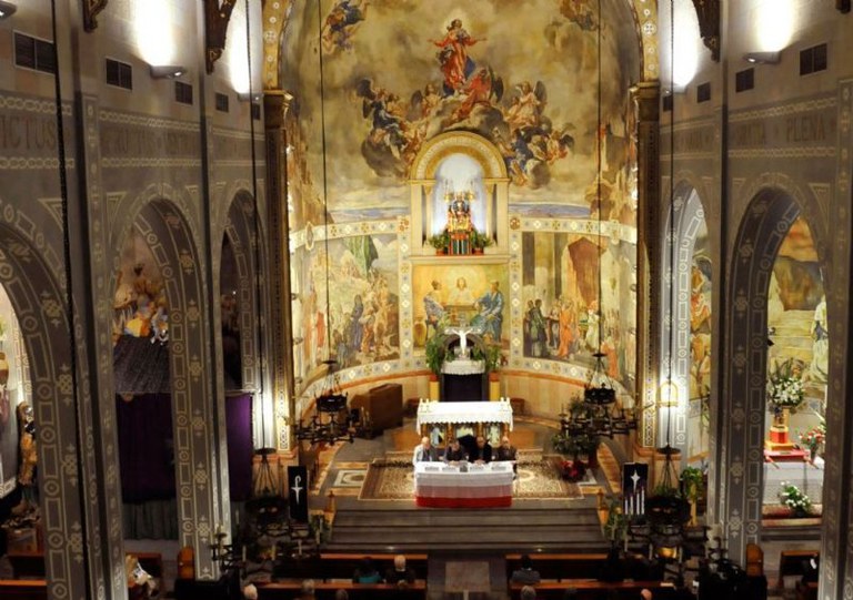 Misas el domingo: 9h. (Catalán), 11h. (Castellano), 12h. (Catalán o Castellano), 13h. (Catalán), 20h. (Castellano).