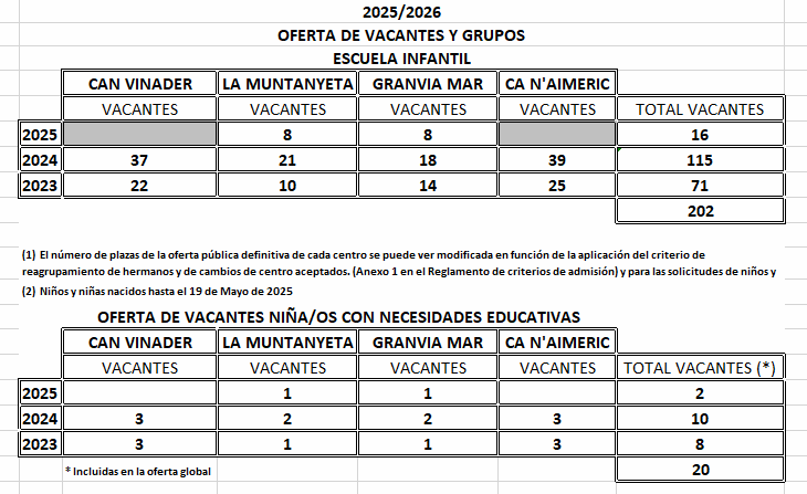 ES NECESARIO ASISTIR a una de las reuniones informativas sobre la matrícula que se celebrará el día 11 de Junio. Para poder asistir debe hacer inscripción aquí (próximamente facilitaremos aquí el enlace). En la lista con las plazas adjudicadas aparecerá día y hora para formalizar la matrícula. Este trámite es necesario para obtener la plaza y se realizará en el centro en el que se haya asignado.OFERTA DE PLAZAS CURSO 2025-26: