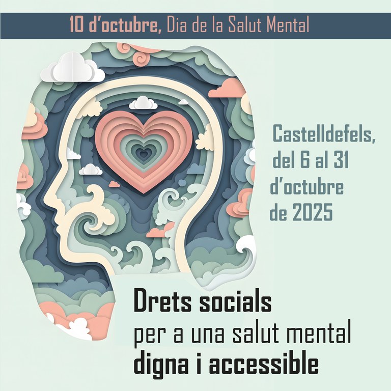 La Federación Mundial por la Salud Mental (WFMH) impulsó con el apoyo de la Organización Mundial de la Salud (OMS) la declaración del día 10 de octubre como el Día Mundial de la Salud Mental con el objetivo de concienciar sobre la importancia de su promoción, prevención y atención. En Castelldefels nos sumamos cada año programando una serie de actividades culturales, artísticas, sociales, deportivas y de ocio, etc... para contribuir a visibilizar la importancia de la salud mental para la mejora de la calidad de vida y para dar a conocer los servicios y entidades que trabajan para la prevención, promoción y atención de la salud mental en el territorio.